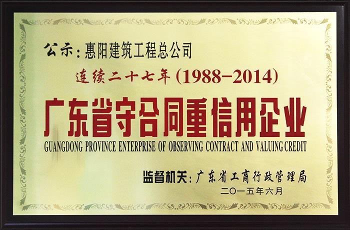 惠陽建筑工程有限公司創建于1953年9月,1996年1月經建設部批準,晉升為工業與民用建筑工程施工一級企業 ;2002年6月28日經建設部批準,資質就位重新核定為房屋建筑工程施工總承包壹級建筑業企業,2002年8月28日經廣東省建設廳批準增項并具有市政公用工程施工總承包貳級資質,屬國有企業。